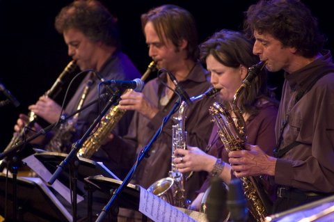 Zoals een president van een land op tv op een staatsman kan lijken, louter door zijn vertrouwenwekkende oogopslag, zo lijkt Tetzepi op een big band. Drie trompetten, drie trombones, vier saxofoons en een ritmegroep van vier man: hier hebben we het klassieke jaren dertig-model. Ben je geneigd te zeggen. Maar de muziek van het Amsterdamse orkest heeft evenveel met traditionele big band swing te maken als de ondervragingstechnieken van een geheime dienst met waarheidsbevinding, casu quo vrijheid dan wel democratie. Als je Tetzepi al in een specifieke traditie kunt plaatsen dan is dat eerder die van de twintigste-eeuwse kamermuziek en wat we, bij gebrek aan een betere term, met 'nieuwe muziek' aanduiden. Wanneer je per se voorlopers in de jazz wilt aanwijzen, dan zijn de groepen van Charles Mingus, de late Gil Evans en George Russell referentiepunten. Tetzepi werk niet zozeer met ritmische grooves of harmonische ontwikkelingen als wel met puur geluid. Als een constructivistische beeldhouwer stapelen de muzikanten geluid op en naast elkaar. Melodieën 'zien eruit' als kristalstructuren, als door een computer gegenereerde repeterende figuren. "Ons publiek is juist vaak niet het jazzpubliek," stelt trompettist Hans Leeuw, die samen met saxofoniste Esmee Olthuis de spil vormt van Tetzepi. "Het zijn vaak mensen die veel meer in kunst in haar algemeenheid zijn geïnteresseerd. Misschien ook in vrije geïmproviseerde muziek. Of blanco, inderdaad. Voor veel mensen is jazz saai." "Je maakt van een Soesja Citroen-liefhebber nooit een Tetzepi-liefhebber," verduidelijkt Olthuis, om daar verdedigend aan toe te voegen: "Ik vind, sommige dingen moet je boud zeggen." De verslaggever suggereert Pia Beck in plaats van Citroen, wat aan de bandleiders een bulderend gelach ontlokt. "O.k., die doen we," beaamt Esmee tevree.