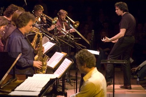 De naam is een verbastering van Zeptepi, een term die in de Egyptische mythologie voor 'de tijd vóór het begin der tijden' staat. Over die tijd kunnen we ons niet zo gek veel voorstellen, maar je kunt ervan uitgaan dat er toen hele maffe dingen aan de hand waren. Dat geldt ook voor de muziek van het gezelschap. Precies zoals eens Duke Ellington componeren Hans Leeuw, John Korsrud, Onno van Swighem, Albert van Veenendaal en andere Tetzepi-leveranciers stukken die op de huid van de specifieke instrumentalisten geschreven zijn. Dan blijkt de uitermate dynamische elektrische gitaar ook fraai te mengen met de trombones, in geluidsbrokken van variabele lengte. In Korsruds 'Danse Russe' wordt een lieflijke saxofoonpassage wreed de mond gesnoerd door een krachtige zweepslag van het koper. Daarbij valt het verschil in aanpak op van de twee dirigenten, Wouter Hakhoff en Onno van Swighem. Die eerste kneedt het orkest met dansende bewegingen, houdt het zorgvuldig op kookhoogte. Van Swighem is meer een oude alchimist die in zijn ketel roert en voorzichtig een snufje van dit en een schepje van dat toevoegt. Allebei zijn ze in sterke mate bepalend voor het uiteindelijke geluid van Tetzepi. "De georganiseerde chaos, wat Mingus ook deed, vinden we leuk," legt Esmee uit. "Wat we soms ook roepen: we moeten wel weer terug effe naar die chaos. Makkelijk kom je ook in een situatie dat het allemaal geregeld wordt. Alsof je in de fanfare bent! Terug naar de chaos! Dat is iets waar je voortdurend op moet letten, dat je die chaos niet onder laat sneeuwen door regeltjes. Dat is een balans." "Ja," reageert Hans, "maar je wilt toch gelijk zeggen dat als er chaos is, dat het wèl helder moet blijven." "Het moet wel gefocust blijven," beaamt zijn collega-leider. "Want gewoon maar dat geïmproviseer met z'n allen door mekaar heen, daar zijn we wel klaar mee. Dat daagt ons niet meer uit."