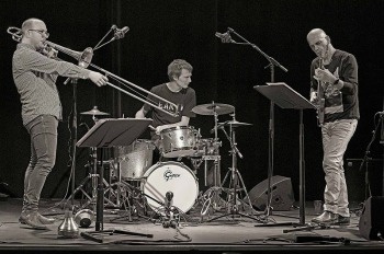 Het trio is al enkele jaren een working unit en in Neerpelt naderde het trio het einde van een tournee die hen langs Zwitserland, Duitsland, Frankrijk, Griekenland en tenslotte België voerde. Het was duidelijk dat ze helemaal op elkaar ingespeeld waren, want de ideeën stroomden als vanzelf - of het was de perfecte uitvoering van een lange, uitgewerkte suite. De intro deed al meteen het begin van een suite vermoeden en het ging ook verder als een intens muzikaal verhaal. Bruun kwam vrij snel even alleen aan slag en een beetje verder kwam de figuur van Ducret op de voorgrond. Hij haalde uit met glibberige gitaarklanken, waardoor hij een vet soort van science fiction-funk in het geheel bracht. Als we het eerste lange nummer in beeld zouden moeten brengen, zou het zich deels in de binnenkant van een teletijdblender afspelen. De trombone stond garant voor vloeiende bewegingen, waartegenover Ducret en Bruun op een heel soepele manier allerhande hoekigere lijnen plaatsten. In deze formatie zonder piano of bas zorgden zij beiden voor een eigenzinnige ritmische begeleiding, die het louter ritmische regelmatig oversteeg.
