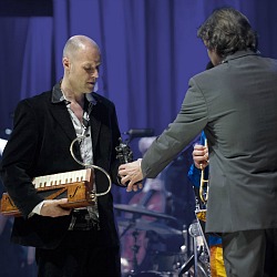 In de categorie World won The Gurdjieff Folk Instruments Ensemble onder leiding van Levon Eskenian de Edison en hier was iets opvallends aan de hand. Eskenian vertaalde pianocomposities uit het merkwaardige oeuvre van de Armeens/Griekse George Gurdjieff terug naar de oorspronkelijke instrumenten waarmee ze gespeeld zouden moeten zijn, waardoor de stukken weer volkomen natuurlijk gingen klinken. Een ontbrekende en waardevolle schakel, vond de jury, die unaniem onder de indruk was van deze prestatie. Eskenian vertolkte het haast mystieke 'Chant From A Holy Book' op duduk, een blaasinstrument met een betoverend warm en diep geluid. Saillant detail: terwijl het Edison Gala in volle gang was, trad fadozangeres Mariza op in Carré. Zij won vorig jaar de Edison in deze categorie en nam deze terzelfder tijd - hetzij een jaar later - in het vermaarde Koninklijk Theater in ontvangst. Het Metropole Orkest, dat volgens traditie de winnaars begeleidt bij hun optredens, bracht vanavond een ode aan de dit jaar overleden componist en pianist Rob Pronk. Pronk was ook jarenlang gastdirigent bij het Metropole. Het orkest voerde het wonderschone 'At Dawn' uit, een compositie van Pronk, met solist Marc Scholten op de altsaxofoon.