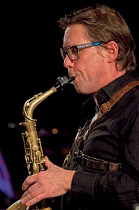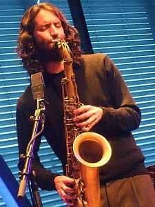 Na een langere pauze was het aan het kwintet PumpOrgan, een vrij nieuw, door bassist/saxofonist Dirk Bruinsma geleid kwintet, waar ook de volledige Cactus Truck ooit deel van uitmaakte, en dat de vrije improvisatie even terzijde schoof. Het domein tussen jazz en rock-'n-roll werd afgebakend met een set potige fusion, die met een been in de traditie stond, maar nergens stoffige oorden opzocht. Was de aanpak soms erg rechttoe rechtaan, met de scheurende baritonsax van Christian Ferlaino en de excentriek bespeelde Hammond van Wilbert Bulsink in een glansrol binnen deze bluesy melange die avant-jazz aan roots koppelde, dan zocht het later soms ook hoekiger oorden op, met complexe composities vol verschuivende maatsoorten en baldadige spreidstanden. Er sloop soms een vaag New Yorkse invloed in, je dacht hier en daar onvermijdelijk aan X-Legged Sally en consoorten, of aan de knetterende jazzrock van Zappa. Een drummer als Nout Ingen Housz heeft vermoedelijk ook wel wat platen van King Crimson en Mahavishnu Orchestra in huis, ook al wist hij mooi de overdaad te vermijden. Meest opvallend was dat Bruinsma een van de weinige muzikanten is die zowel elektrische bas als altsax speelt. Op die bas speelt hij virtuoos, swingend en met een vette sound, terwijl hij als altsaxofonist - gitarist Mikael Szafirowski, die altijd een carrière als body double voor acteur Ben Foster kan najagen, schakelde dan over op bas - zorgde voor een voluptueuze verdubbeling van de frontlinie. Bij momenten klonken de composities erg arbeidsintensief en na de korte sets ervoor was deze langere set van PumpOrgan best een taaie brok, maar het was niettemin een derde sterk concert, waarmee het stilistische bereik van Tumult duidelijk begon te worden.