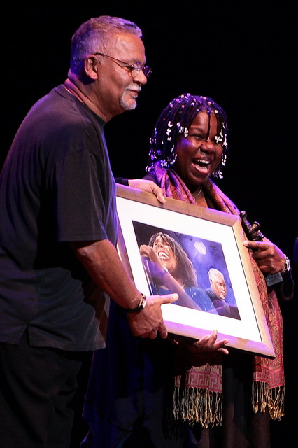 De eerste Edison in de categorie Jazz Nationaal was voor Eric Vloeimans en zijn Gatecrash-kompanen Jeroen van Vliet (Fender Rhodes), Gulli Gudmundsson (bas en basgitaar) en Jasper van Hulten (drums). Zij speelden met een ronduit adembenemende uitvoering van 'V-Flow' het Muziekcentrum muisstil met 18-karaats jazz. En het was meteen hét muzikale hoogtepunt van de avond! Na de overhandiging van het Edisonbeeldje vroeg men Vloeimans wat het verschil was tussen het bekroonde album 'Gatecrashin' van dit jaar en 'Summersault', het album dat vorig jaar een Edison kreeg. "Deze band is meer elektronisch met Fender Rhodes en mijn elektronische klankdoos. We spelen groovier, uitbundiger en geven hem meer van Jetje." Heldere taal van deze Brabantse Rotterdammer en Van Gelder deed er dan ook verder het zwijgen toe. Na deze uitvoering had het wat mij betreft pauze mogen zijn en tijd om even bij te komen van deze 'V-Flow'. Maar dat kon natuurlijk niet. En Gatecrash speelde 'Laurine' tot besluit. Daarna werd een filmpje vertoont van de winnares in de categorie World, Wende Snijders. Zij kon zelf de prijs niet in ontvangst nemen vanwege een optreden elders in het land. In de categorie Jazz Vocaal had het publiek gekozen voor de Noorse zangeres Silje Nergaard. Volgens het juryrapport "een zangeres die met haar cd 'Darkness Out Of Blue' iedereen hartstochtelijk in de armen sluit". Na haar optreden hier heb ik nog geen behoefte me bij de groep 'iedereen' aan te melden. Wel werd zij subliem begeleid door het Metropole Orkest met arrangementen van Vince Mendoza.