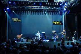 ![]() Moers Festival 2006 Deel 1 Een festivalverslag in woord en beeld door Ken Vos, augustus 2006 Zo pünktlich als vroeger zijn de Duitsers niet meer. Niet alleen waren zowat alle treinen in Duitsland een ietsje vertraagd, maar ook na slechts drie concerten slaagde de organisatie van het Moers Festival – alle verwijzingen naar jazz in de benaming zijn verdwenen – erin om al meer dan een half uur vertraging op te bouwen. Toch blijft het een leuk festival, niet om het minst vanwege de ontspannen jaren-zeventig-achtige entourage. Dit jaar was een vuurdoop voor de nieuwe artistiek leider Reiner Michalke, die het overnam van Burkhard Hennen, die het Internationales New Jazz Festival al vanaf 1972 onafgebroken leidde. Overigens, Hennen zelf had volgens de locale Neue Rhein Zeitung zelfs zijn ere-passepartout niet eens afgehaald bij het verkeersbureau. In ieder geval heeft het festival qua programmering een naam op te houden. Zo heb ik er in de loop der jaren uitgebreid kennis kunnen nemen van zowat alle AACM-musici, uiteraard de Duitse free-scene, maar ook geïmproviseerde muziek uit zeer uiteenlopende streken als Japan of Rusland.