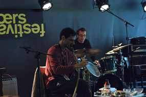 Arve Henriksen Andere locaties Traditiegetrouw waren er buiten het hoofdprogramma om ook concerten op andere, kleinere locaties gepland. Zo waren er de dagelijkse 'Konzerte im Dunkeln', waarbij de luisteraars de ervaring van het luisteren in een pikdonker gemaakte tent aan de rand van het park konden ondergaan. De gedachte was dat een dergelijke ervaring niet alleen de beleving van muziek intensiveert, maar dat de luisteraar daarnaast ook nog de ervaring van slechtzienden en blinden deelt, een doelstelling van een van de sponsors. Een inte-ressant idee dat echter op mijn ervaring van het luisteren niet zoveel impact leek te hebben. De programmering van dit onderdeel was in handen van de ook in Nederland bekende klarinettist Eckard Koltermann. Het kwartet Minimal Cats Environment was de eerste op de zaterdagavond, een vriendelijk en losjes klinkend gezelschap uit London bestaand uit Lothar Ohlmeier (basklarinet), Tom Arthurs (trompet), Roland Fidezius (bas) en Achim Krämer (drums). De tweede band, het trio PaPaJo (trombonist Paul Hubweber met drummer Paul Lovens en bassist John Edwards) klonk wat strakker en wat directer. Aangename muziek die volgens het programmaboekje vooral de zachte kant van de improvisatiemuziek moest vertegenwoordigen. Op de zondag was de Oostenrijkse voordrachtskunstenaar Rupert Seidl met zijn in het Duits vertaalde Perzische gedichten, en aangevuld door drie Iraanse instrumentalisten (op ney, daf en santur) in het kader 'Talking Music' in deze context een stuk indringender qua sfeer. De klassiek aandoende muziek klinkt aangenaam ongeforceerd en natuurlijk. Haast een logische voortzetting leken de interacties tussen Jan Klare (altsax), Han Buhrs (stem) en Wilbert de Joode (bas), waarin gemeenschappelijkheden makkelijk werden gedeeld. De Duitse altist en Nederlandse bassist zijn musici die een soortgelijk gevoel van helderheid van expressie delen, mooi contrasterend met de soms uitbundige uithalen van Buhrs. De ochtenden van zaterdag, zondag en maandag kon je doorbrengen in drie verschillende kleine locaties vlak buiten het park. Daartoe waren groepen muzikanten uit drie steden uitgenodigd, Keulen (Frischzelle), Wenen (JazzWerkstatt Wien) en Beiroet. Vooral de laatste plaats is natuurlijk intrigerend, omdat van de muzikale activiteiten daar vrijwel niets doorsijpelt in het buitenland. De ochtend werd telkens netjes gescheiden per stad begonnen, waarna uitwisseling van de individuele muzikanten werd aangemoedigd.